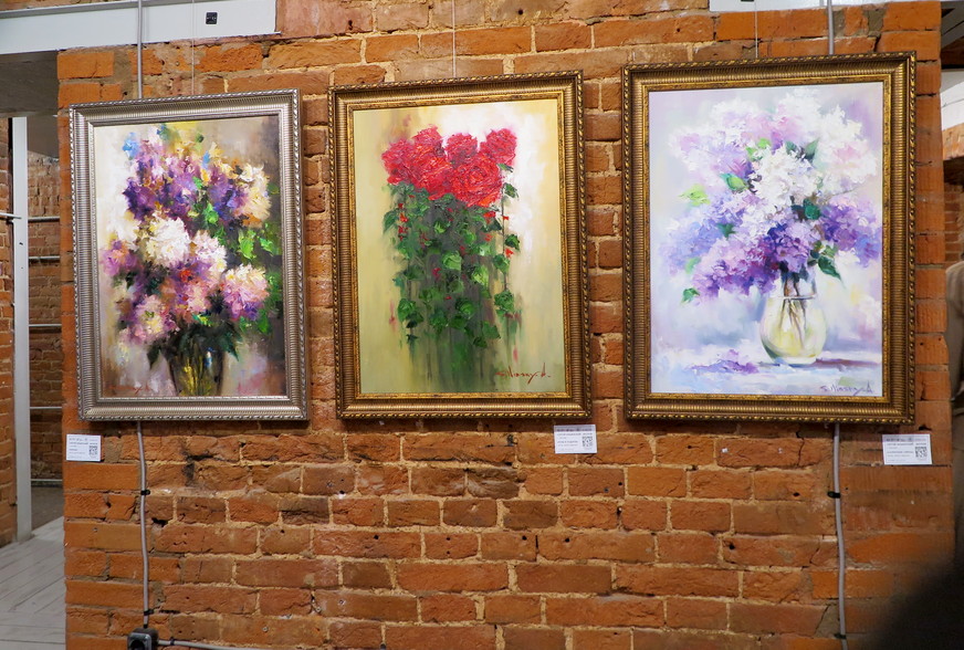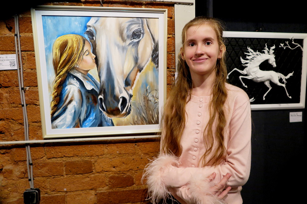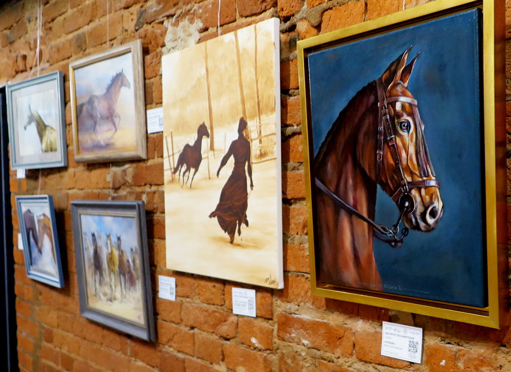В экспозиции органично переплелись мотивы, казалось бы, далекие друг от друга: степные пейзажи соседствуют с нежными цветами, а морские обитатели — с динамичными фигурами лошадей.